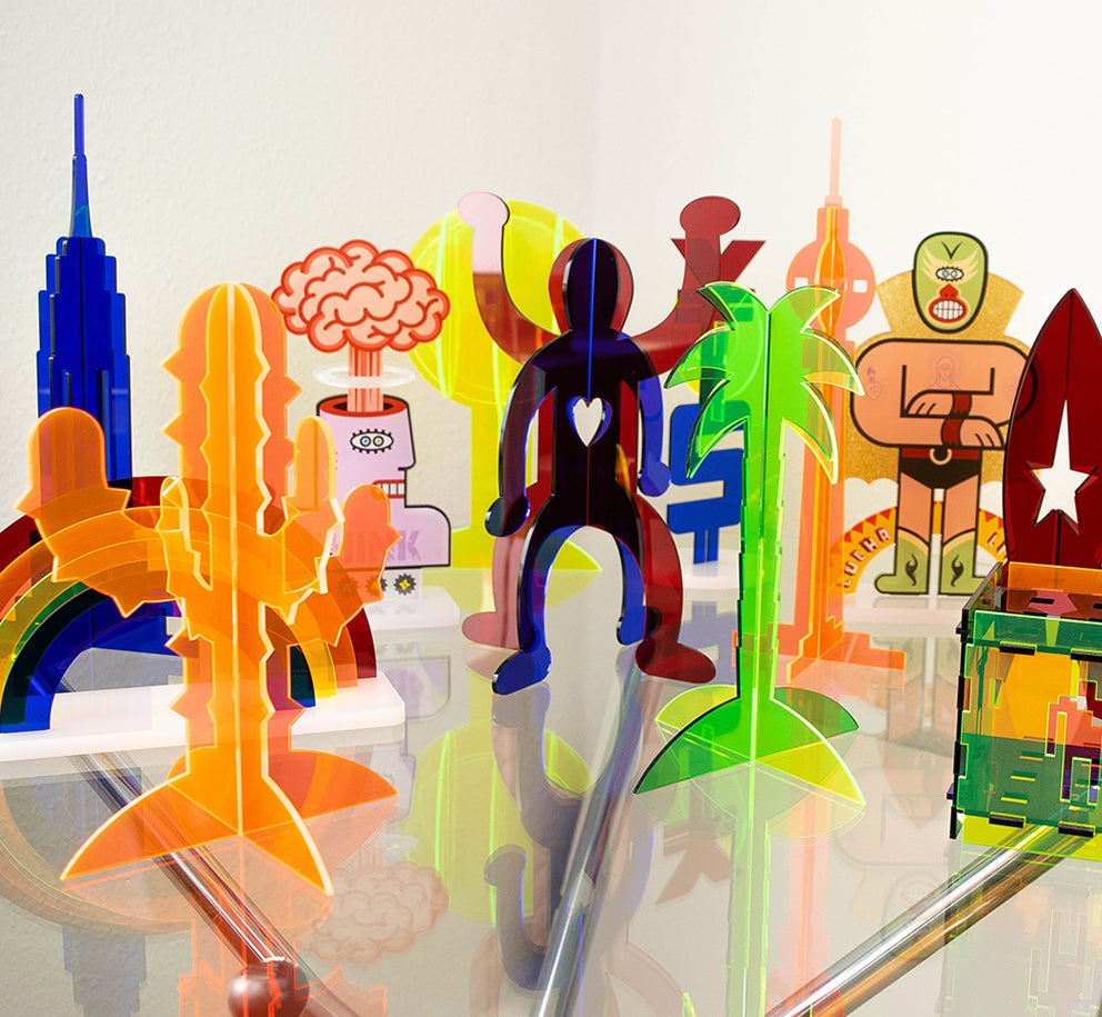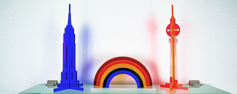 Die Kontur der Figur ist aus 5 mm starken Acrylglas geschnitten, und in einem milchglasweißen Sockel verklebt. Der rückseitige Foliendruck gibt der Figur eine entsprechende Tiefenwirkung, schützt das Motiv vor Beschädigungen, und garantiert eine langlebige Brillanz der Farben.